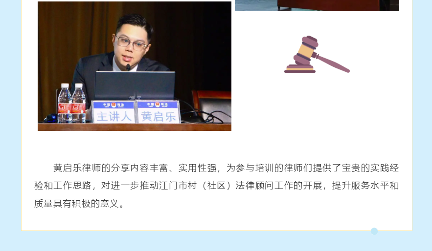 黄启乐律师受邀参与全市一村(社区)一法律顾问工作培训班并分享经验